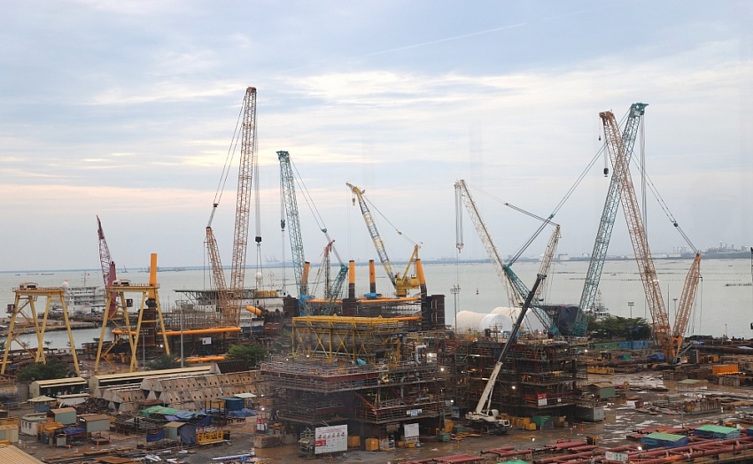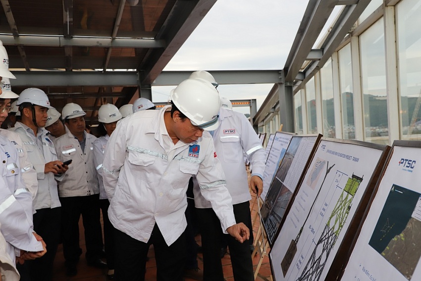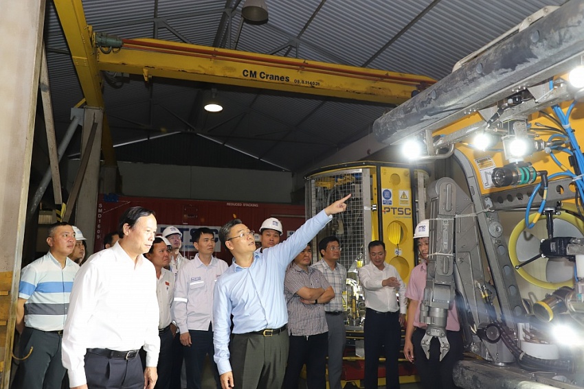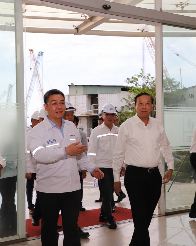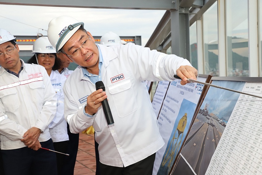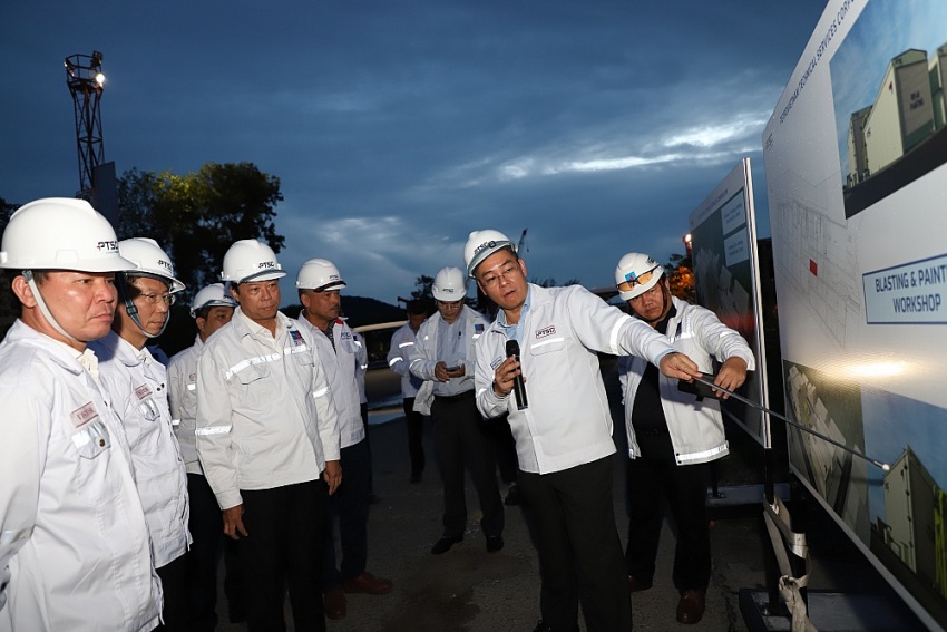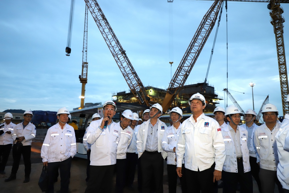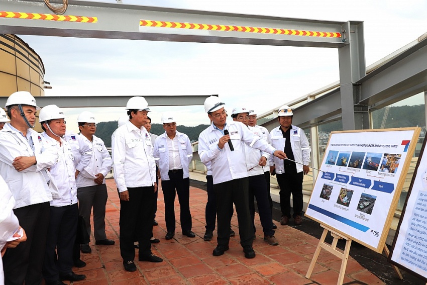 Đoàn công tác của UBND tỉnh Bà Rịa – Vũng Tàu cũng đã tham quan xung quanh công trường cảng PTSC, nhà xưởng và nghe lãnh đạo Tổng Công ty PTSC giới thiệu các khu vực mà PTSC đang triển khai thực hiện công việc điện gió ngoài khơi.