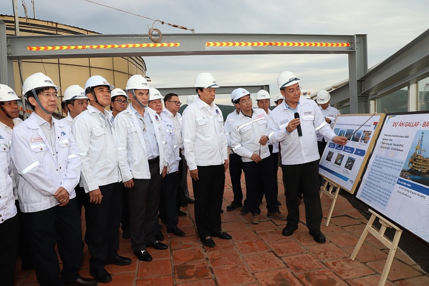 Đoàn công tác tham quan và nghe giới thiệu về việc triển khai thực hiện công việc điện gió ngoài khơi của PTSC.