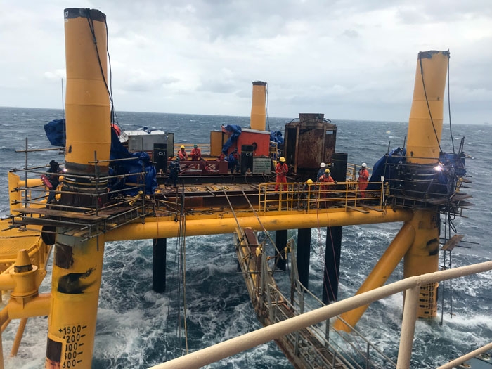 On 18th Oct 2018, finish the offshore the offshore installation of the superstructure, load-bearing floor, airport and air release valve;
