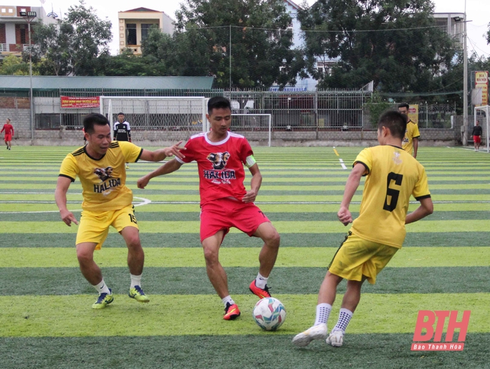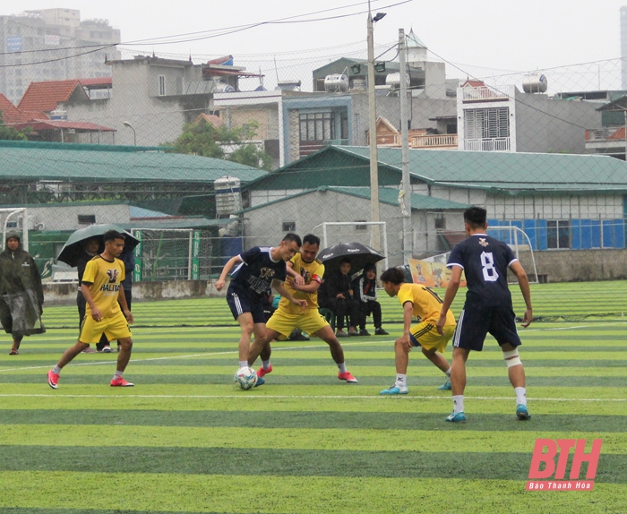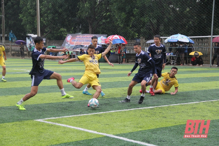 Trận chung kết giữa 2 đội FC Tùng Sơn Anh (áo sẫm) và FC PTSC Thanh Hóa (áo vàng) đã diễn ra quyết liệt, hấp dẫn