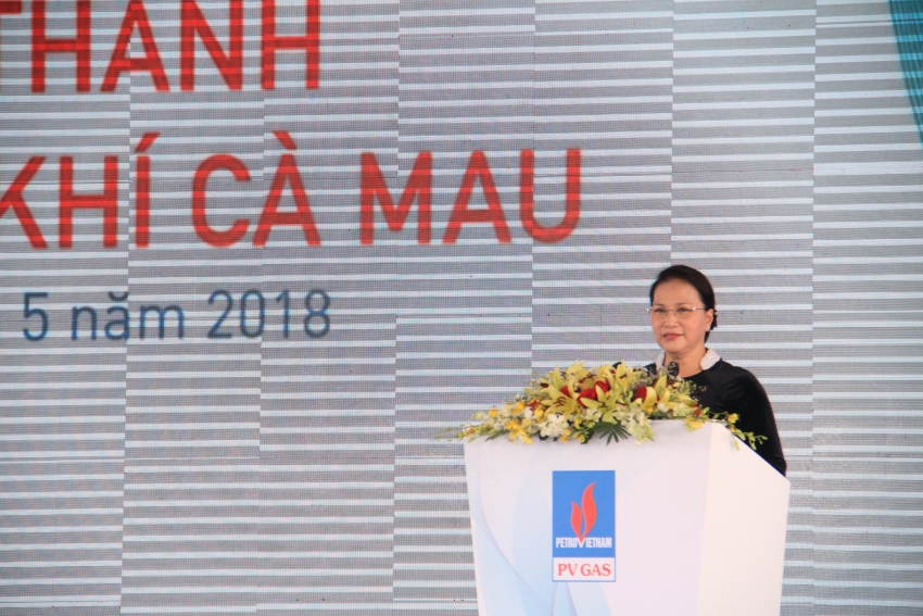 Speaking at the inauguration ceremony, Ms.Nguyen Thi Kim Ngan expressed the glad of being in Ca Mau province in the joyful atmosphere celebrating the great anniversary of the country in 2018, attending the inauguration ceremony of Ca Mau Gas Processing Plant.