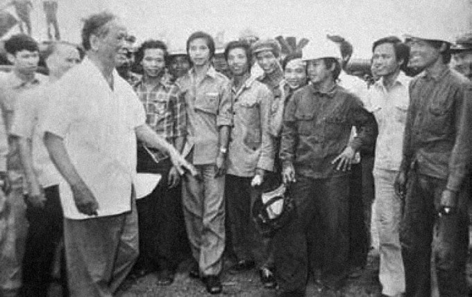 Đồng chí Lê Duẩn với các công nhân của Xí nghiệp Liên doanh Vietsovpetro.