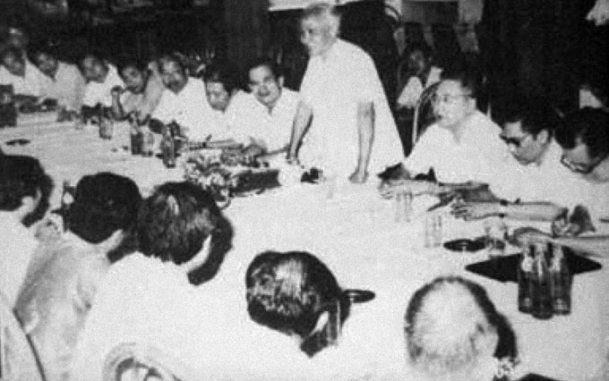 Thủ tướng CHXHCN Việt Nam Phạm Văn Đồng phát biểu trước cán bộ, công nhân viên Việt Nam làm việc tại Xí nghiệp Liên doanh Vietsovpetro. Bên trái là Bí thư đặc khu ủy Vũng Tàu - Côn Đảo Lê Quang Thành, bên phải là lãnh đạo Tổng cục Dầu khí Việt Nam Nguyễn Hòa (năm 1981).