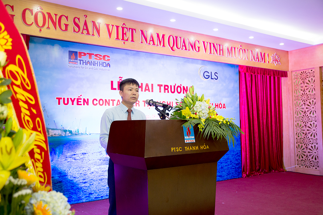 In the morning of October 08th, 2017, at Terminal 1 - Nghi Son Port (Nghi Son Commune, Tinh Gia District, Thanh Hoa Province), PTSC Port Joint Stock Company (PTSC Thanh Hoa) coordinated with Global Logistics Service Co., Ltd (GLS Shipping) in holding the launching ceremony of the inland container transportation route from Nghi Son Port to Ben Nghe Port in Ho Chi Minh City and welcomed to the first container ship that anchored at Nghi Son port.
