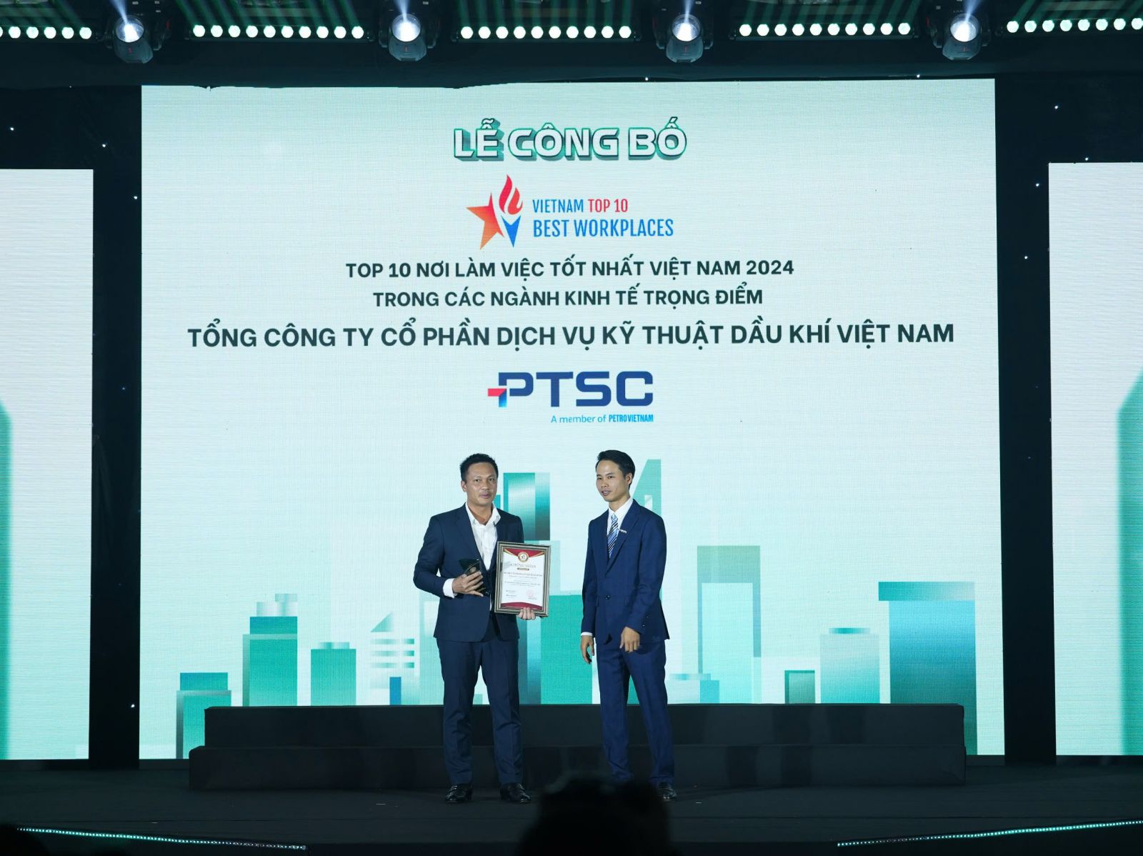 Ông Đỗ Huy Thế Trưởng Ban Quản trị Nguồn nhân lực đại diện Tổng công ty PTSC nhận danh hiệu Top 10 nơi làm việc tốt nhất năm 2024.