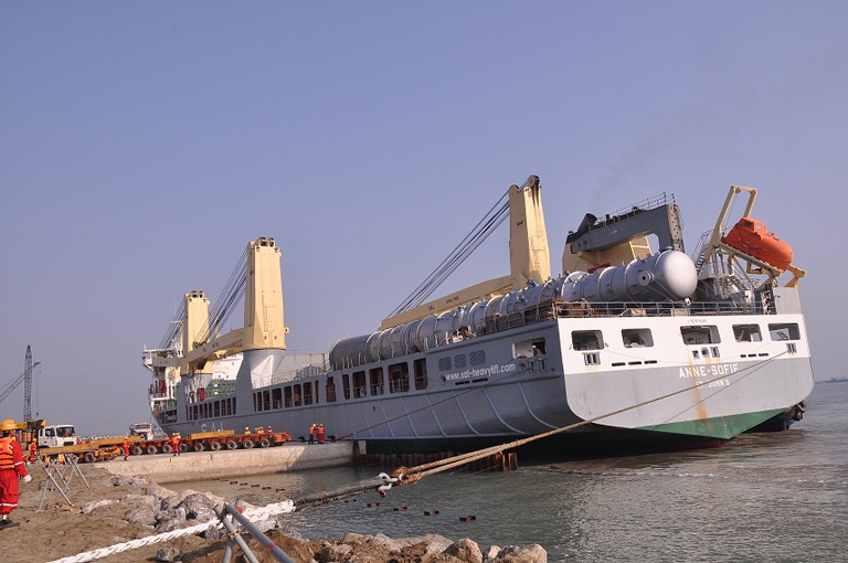 Sau 02 ngày làm việc khẩn trương, toàn bộ 07 module của tổ hợp tháp chịu áp đã được đưa tới vị trí lắp đặt cuối cùng tại mặt bằng dự án đảm bảo tuyệt đối an toàn và đúng tiến độ đề ra, tàu MV ANNE SOFIE cũng đã rời Cảng tạm vào sáng ngày 03/01/2015 tiếp tục hành trình tới Nhật Bản để nhận lô hàng thứ 2 và dự kiến sẽ quay lại Nghi Sơn vào cuối tháng 01 năm 2015. Sự kiện tiếp nhận thành công tàu hàng siêu trường siêu trọng đầu tiên tại Cảng tạm của dự án Lọc hóa dầu Nghi Sơn có ý nghĩa vô cùng quan trọng đối với tiến trình xây dựng dự án cũng như góp phần nâng cao uy tín và hình ảnh của PTSC Thanh Hóa trong lĩnh vực cung cấp dịch vụ hậu cần căn cứ cảng.