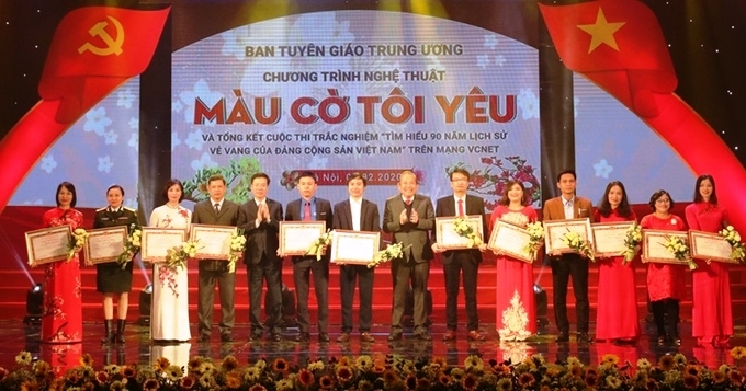 Mr. Vo Van Thuong and Mr. Truong Hoa Binh awarded Certificates to individuals who won first prizes in multiple-choice tests of “Learn glorious history”.