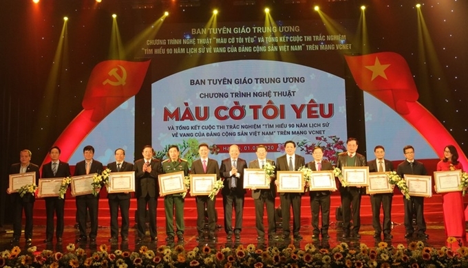 On February 1, at Au Co Art Center (Hanoi), the Central Propaganda Department organized "The flag color I love" show and summed up the contest "Learn 90 years of glorious history of the Vietnam Communist Party" on the VCNET page. Vietnam Gas Corporation - Joint Stock Company (PV GAS), PetroVietnam Technical Services Corporation (PTSC) and Binh Son Petrochemical Refinery Joint Stock Company (BSR) are honored to be the sponsors and accompany the show.