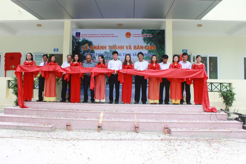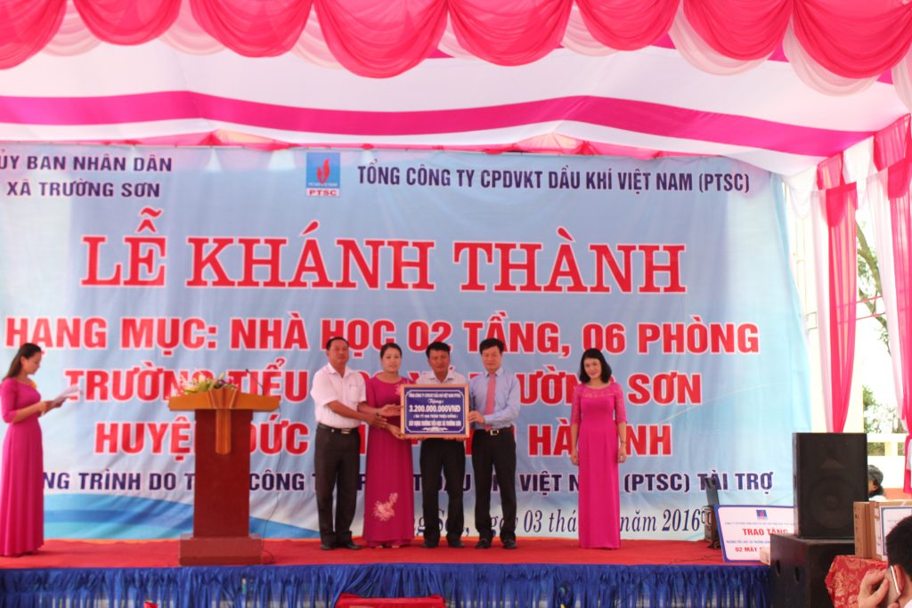 Với tổng giá trị tài trợ 6,2 tỷ VNĐ, 02 công trình trường tiểu học Trường Sơn, huyện Đức Thọ, tỉnh Hà Tĩnh và trường THCS Nghi Sơn, huyện Tĩnh Gia, tỉnh Thanh Hóa đã được Tổng công ty CP DVKT trao tặng trong niềm hân hoan của địa phương, các thầy cô giáo cũng như các em học sinh trong dịp chào năm học mới.
