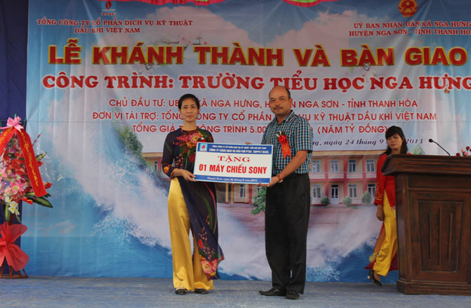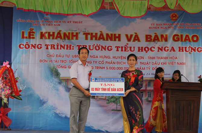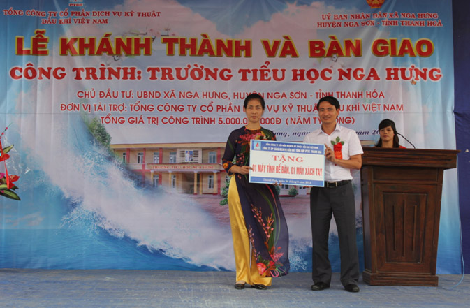 Nhân dịp này, các đơn vị thành viên của Tổng công ty PTSC cũng đã hỗ trợ cho Trường Tiểu học Nga Hưng các thiết bị giáo dục phục vụ trong công tác giảng dạy, trong đó Công y PTSC Thanh Hóa hỗ trợ 01 bộ máy máy tính để bàn và 01 máy tính xách tay, Công ty Cảng Dịch vụ Dầu khí hỗ trợ 01 máy chiếu Sony, Ban điều hành chung dự án nạo vét Cảng Nghi Sơn hỗ trợ 03 bộ máy tính để bàn.