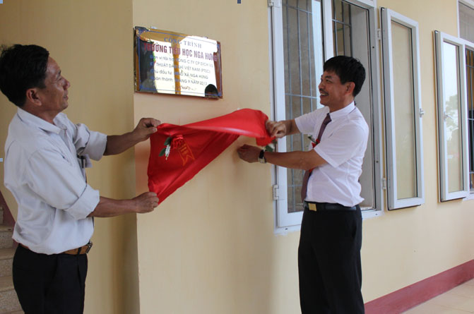 lên trao tượng trưng bàn giao công trình trường tiểu học Nga Hưng.