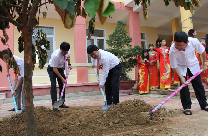 Các đại biểu tham dự trồng cây lưu niệm cho nhà trường