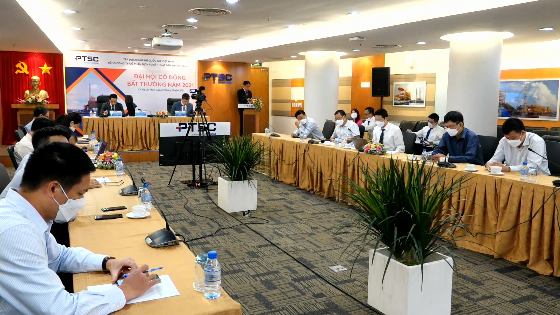 Đoàn chủ tịch điều hành Đại hội bao gồm ông Phan Thanh Tùng – Chủ tịch HĐQT, ông Lê Mạnh Cường – Tổng Giám đốc, ông Nguyễn Xuân Cường – Phó Tổng Giám đốc cùng sự tham dự của các thành viên trong HĐQT, Ban Kiểm soát, Ban Tổng Giám đốc và đại diện các Ban chuyên môn của PTSC. Đại hội được tổ chức nhằm lấy ý kiến cổ đông thông qua tờ trình bổ sung ngành nghề kinh doanh; miễn nhiệm và bầu bổ sung thành viên HĐQT Tổng công ty PTSC với tỷ lệ tham dự của các cổ đông/đại diện ủy quyền đủ điều kiện tiến hành Đại hội theo Luật Doanh nghiệp.