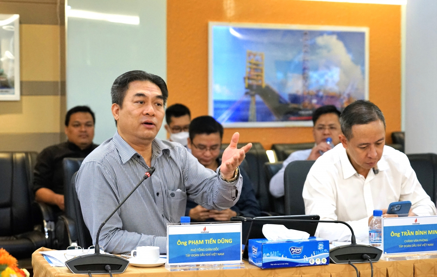 Phó Tổng giám đốc Petrovietnam Phạm Tiến Dũng phát biểu trong cuộc họp.