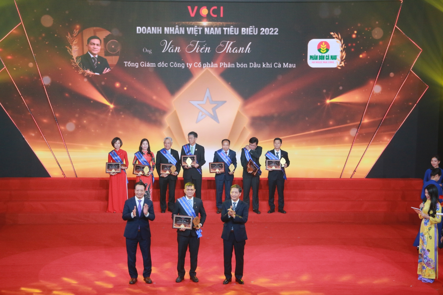 Tổng Giám đốc Công ty Cổ phần phân bón Dầu khí Cà Mau (PVCFC) Văn Tiến Thanh nhận vinh danh "Doanh nhân Việt Nam tiêu biểu năm 2022" tại lễ tôn vinh.