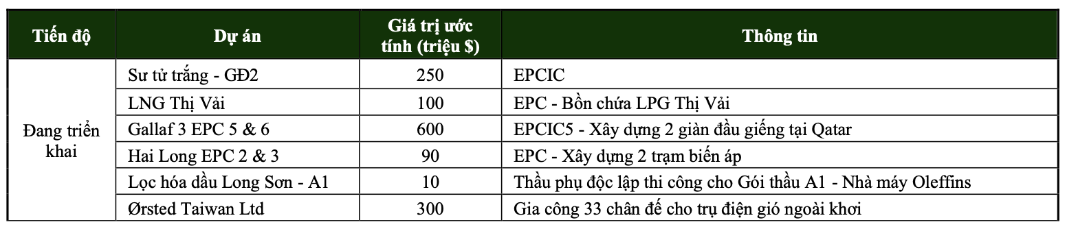 Các dự án xây lắp M&C đang được Dịch vụ Kỹ thuật Dầu khí triển khai. (Nguồn: VCBS)