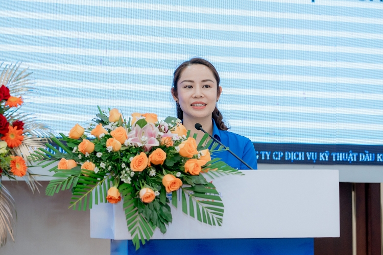 Phát biểu chỉ đạo tại Đại hội, đồng chí Vũ Thị Thu Hương - Bí thư Đoàn Tập đoàn ghi nhận, đánh giá cao những thành tích mà Đoàn PTSC đã đạt được trong nhiệm kỳ 2017-2022. Đồng chí Vũ Thị Thu Hương thay mặt BCH Tập đoàn gửi lời cảm ơn đến Đảng ủy, lãnh đạo PTSC đã luôn quan tâm đến ĐVTN, đặc biệt những lời phát biểu tâm huyết với những nội dung gợi mở của đồng chí Bí thư Đảng ủy Phan Thanh Tùng dành cho tuổi trẻ PTSC.