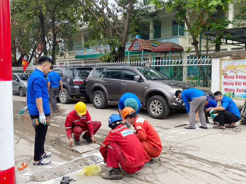 Đoàn Thanh niên PTSC Thanh Hóa phối hợp cùng Đoàn Thanh niên phường Nghi Sơn triển khai lắp đặt gờ giảm tốc tại phường Nghi Sơn